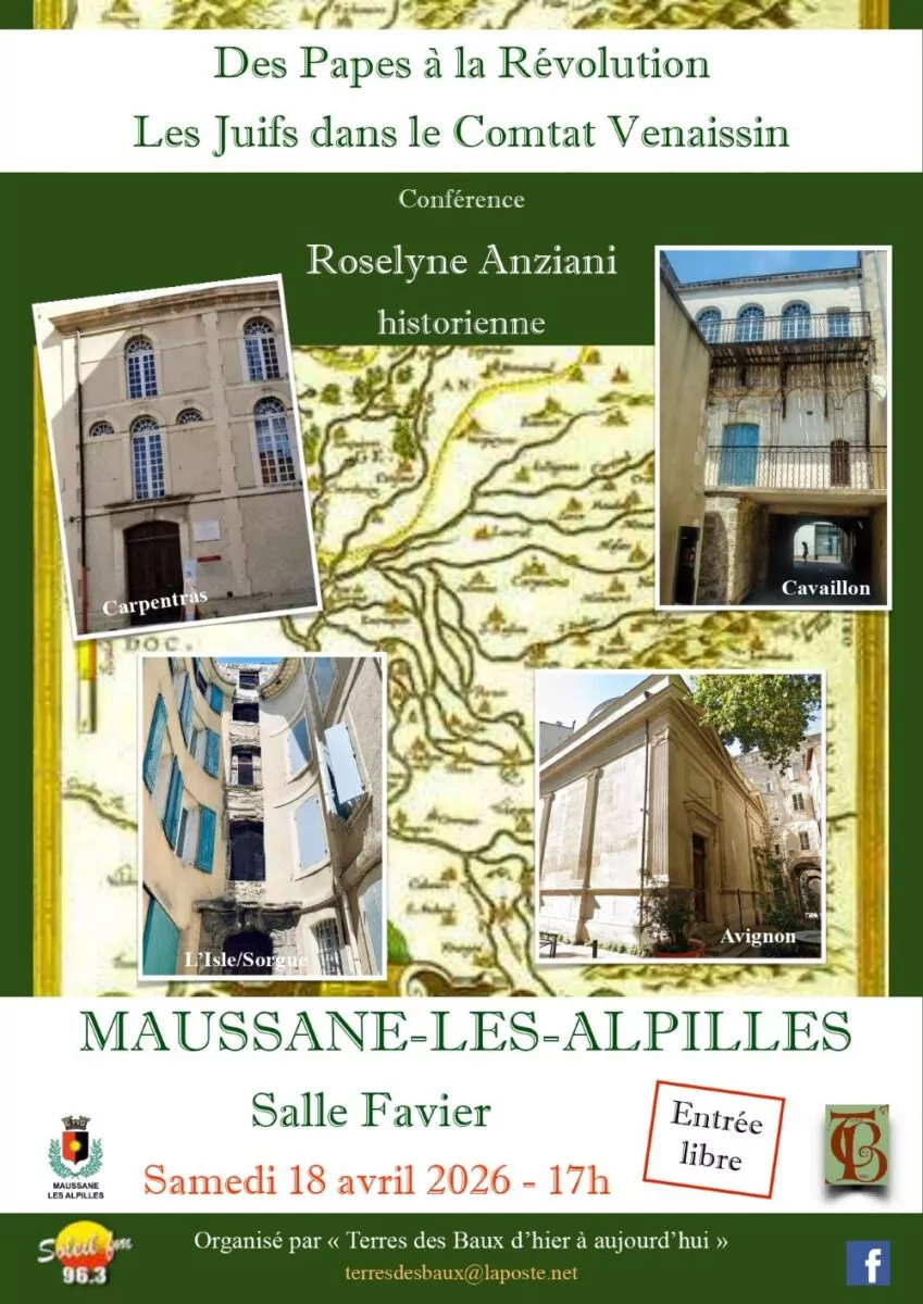 - Conférence à la salle Jean Favier : ‘Des Papes à la Révolution; les Juifs dans le Comtat Venaissin’