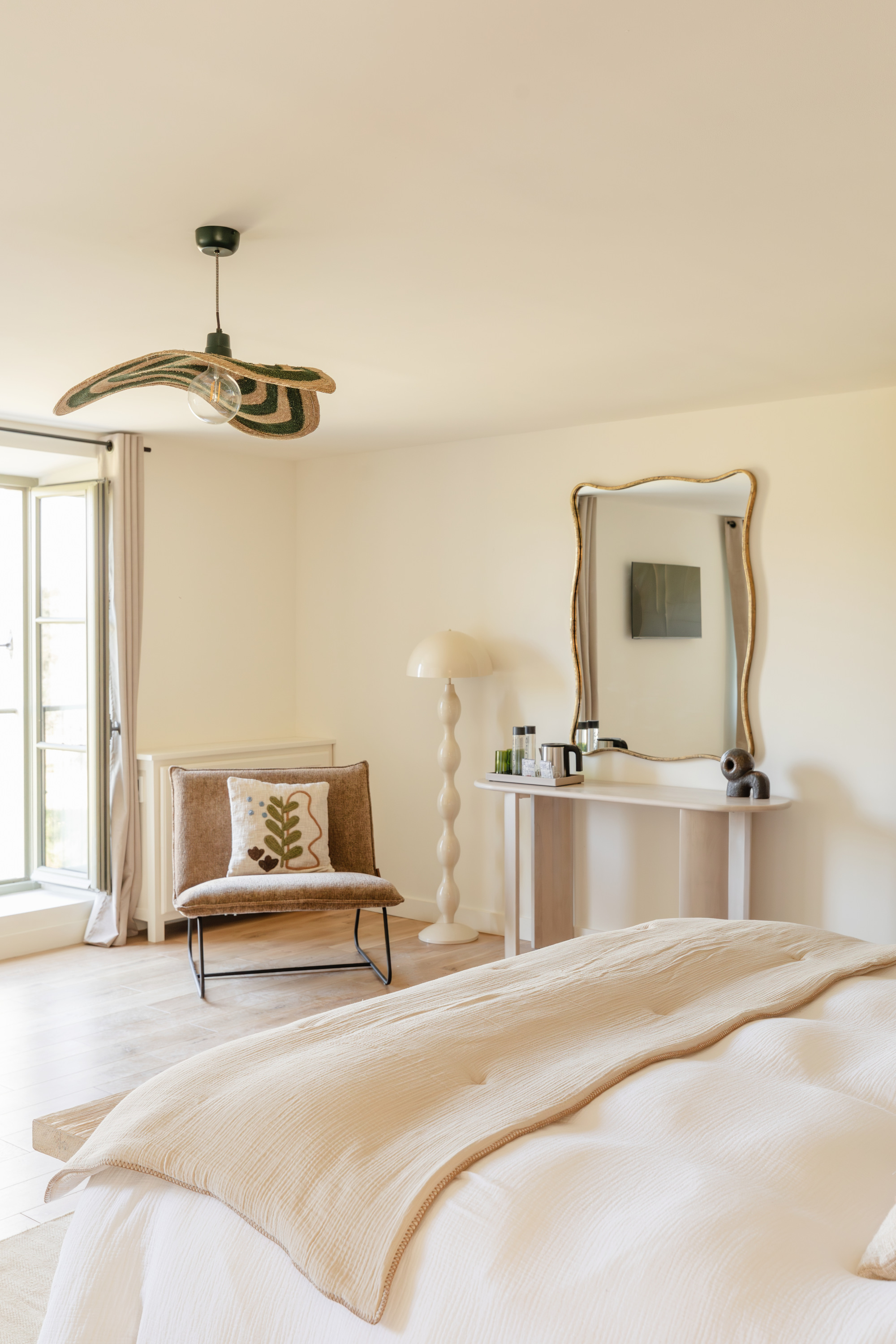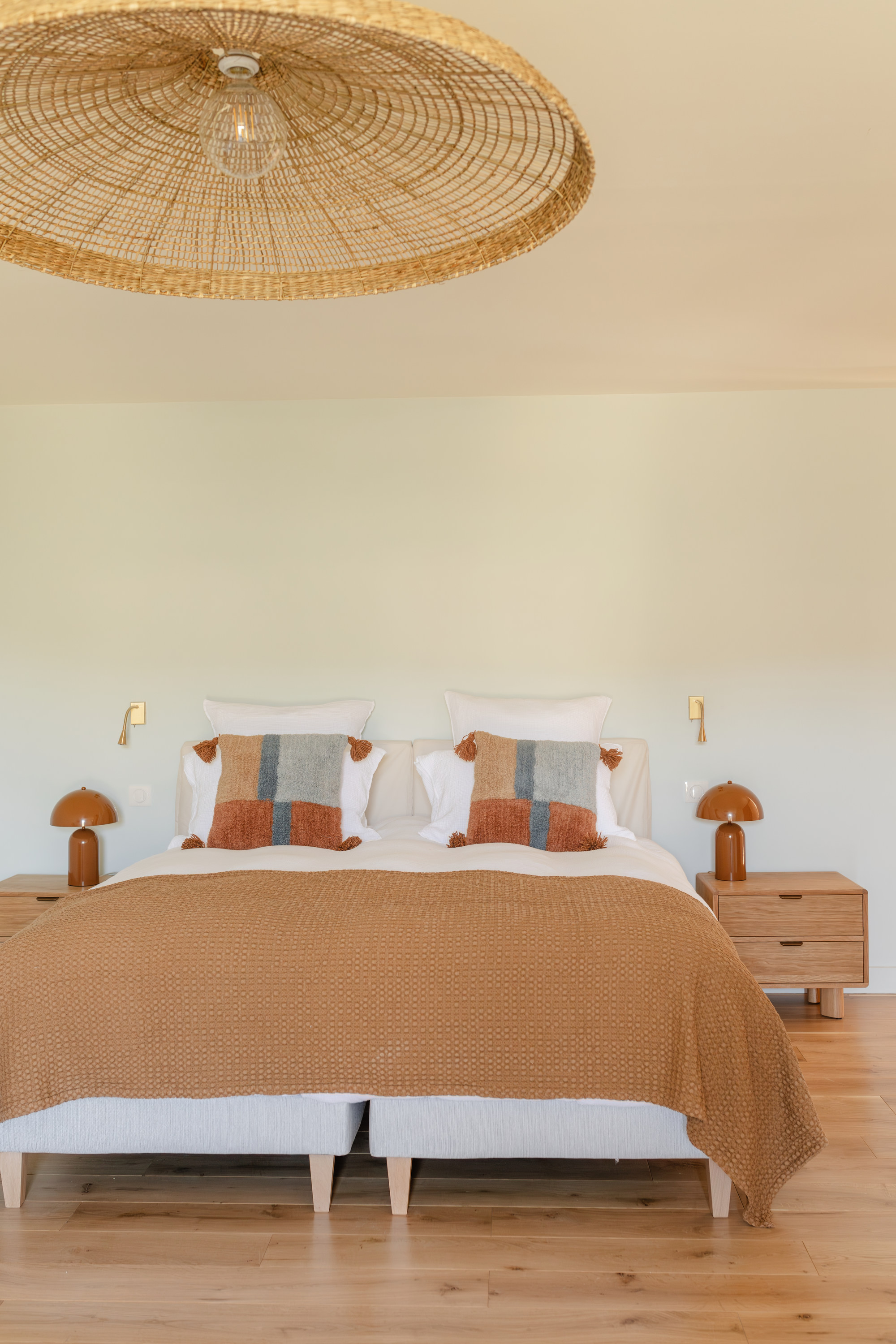 The farmhouse offers 9 warm and comfortable rooms, each carefully decorated in a revisited Provençal style. Exposed beams, natural materials, contemporary touches: each space tells a story and invites you to relax. Whether you are travelling as a couple, with family or friends, you will find the ideal cocoon to settle down and let yourself be carried away.
