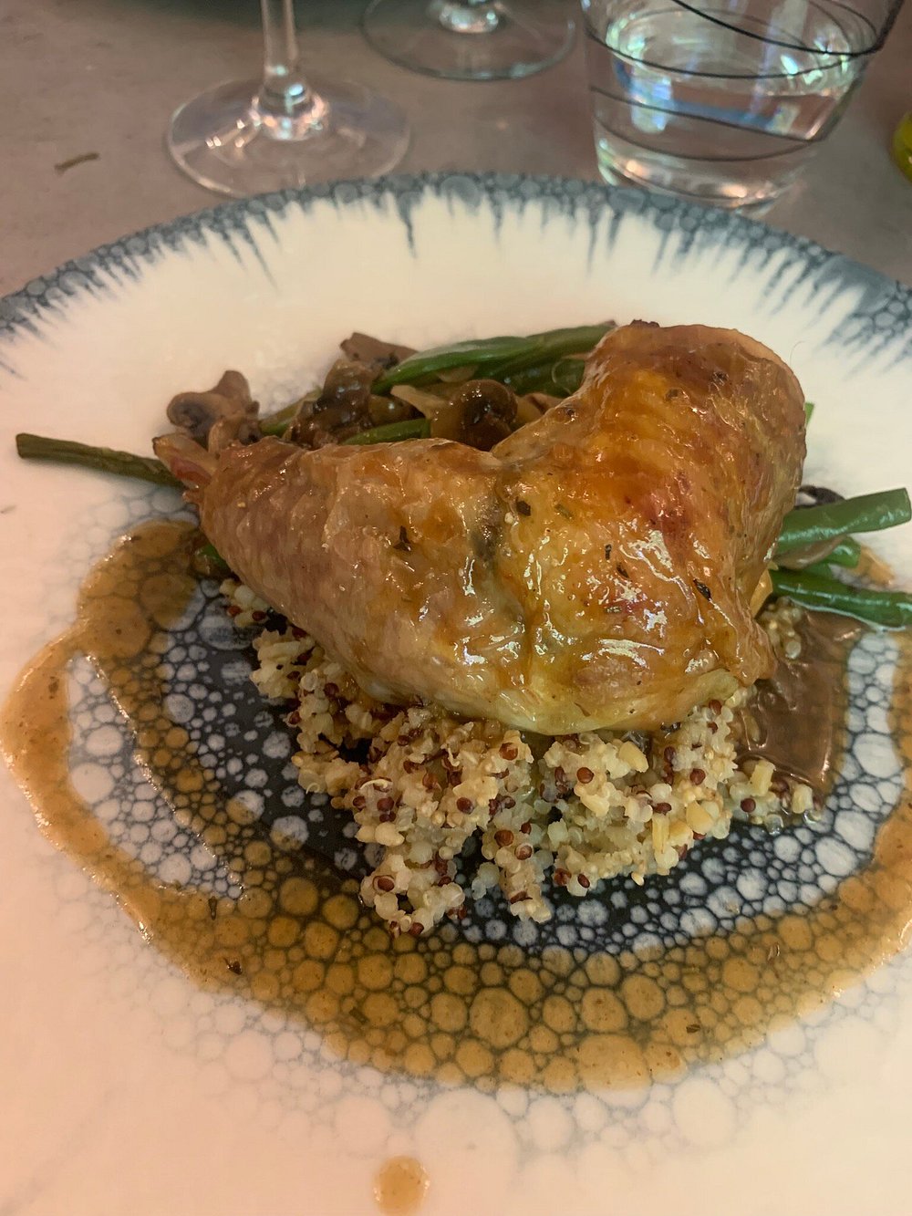 • Filetti di quaglia scottati, mix di verdure con semi di sesamo e salsa ridotta